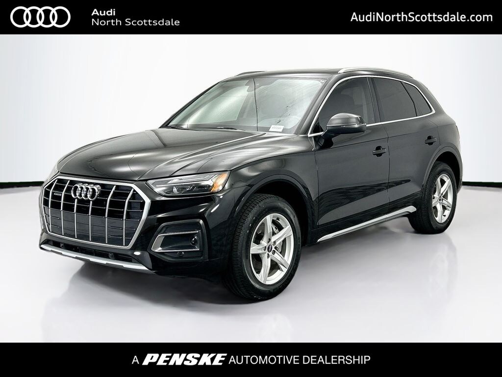 Q5 40 Premium quattro, Audi Certified pre-owned Certified, 4D Sport Utility, 2.0L Turbocharged, Black w/Leather Seating Surfaces, Audi Advanced Key, Auto-Dimming Power Folding Exterior Mirrors, Convenience Package, Driver Seat & Mirror Memory, Heated Steering Wheel, Panoramic Sunroof, SiriusXM w/360L, 10 Speakers, 4-Wheel Disc Brakes, 5.302 Axle Ratio, ABS brakes, Air Conditioning, Alloy wheels, AM/FM radio, Audi Beam-Rings, Auto High-beam Headlights, Auto-dimming Rear-View mirror, Automatic temperature control, Brake assist, Bumpers: body-color, Compass, Delay-off headlights, Driver door bin, Driver vanity mirror, Dual front impact airbags, Dual front side impact airbags, Electronic Stability Control, Emergency communication system: Audi connect CARE, Exterior Parking Camera Rear, Four wheel independent suspension, Front anti-roll bar, Front Bucket Seats, Front Center Armrest, Front dual zone A/C, Front fog lights, Front reading lights, Garage door transmitter: HomeLink, Genuine wood console insert, Genuine wood dashboard insert, Genuine wood door panel insert, Gray-Brown Birch Natural Wood Inlays, Heated 8-Way Power Front Bucket Seats, Heated door mirrors, Heated front seats, Illuminated entry, Leather Seating Surfaces, Leather Shift Knob, Low tire pressure warning, Occupant sensing airbag, Outside temperature display, Overhead airbag, Overhead console, Panic alarm, Passenger door bin, Passenger vanity mirror, Power door mirrors, Power driver seat, Power Liftgate, Power passenger seat, Power steering, Power windows, Privacy Trunk Cover, Radio data system, Radio: Audi Sound System, Rain sensing wipers, Rear air conditioning, Rear anti-roll bar, Rear fog lights, Rear reading lights, Rear seat center armrest, Rear window defroster, Rear window wiper, Remote keyless entry, Roof rack, Security system, Speed control, Speed-sensing steering, Speed-Sensitive Wipers, Split folding rear seat, Spoiler, Steering wheel mounted audio controls, Tachometer, Telescoping steering wheel, Tilt steering wheel, Traction control, Trip computer, Turn signal indicator mirrors, Variably intermittent wipers, Wheels: 18" 5-Arm-Star Design, Q5 40 Premium quattro, 4D Sport Utility, 2.0L Turbocharged, Black w/Leather Seating Surfaces, Audi Advanced Key, Auto-Dimming Power Folding Exterior Mirrors, Convenience Package, Driver Seat & Mirror Memory, Heated Steering Wheel, Panoramic Sunroof, SiriusXM w/360L. Certified. CARFAX One-Owner.