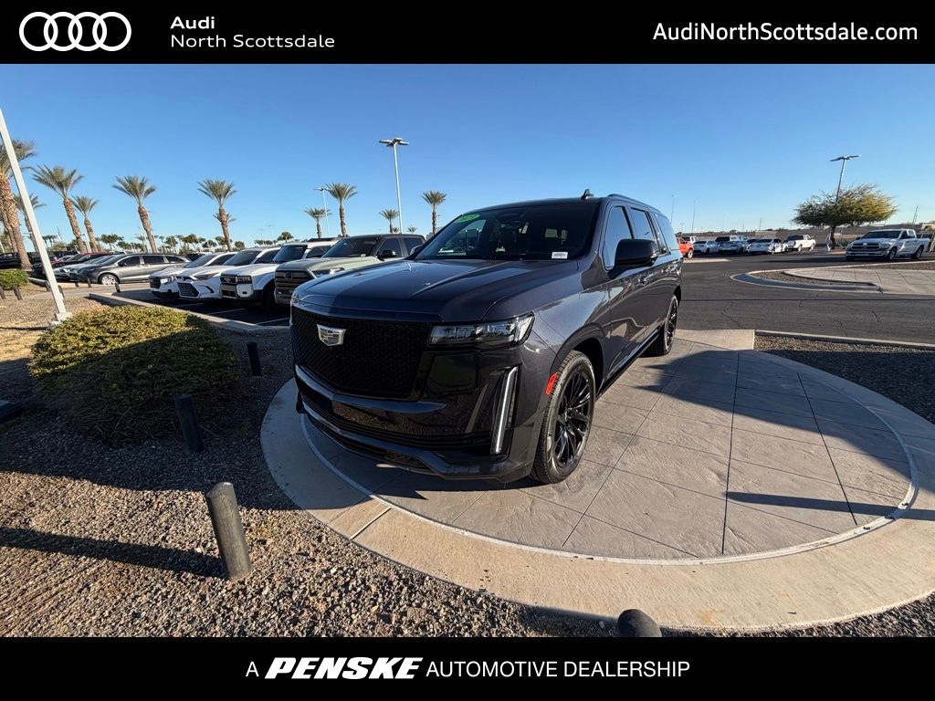 AWD, 16.9" Diagonal OLED Infotainment Screen, 2-Presets Memory For Driver Seat Adjuster, 2-Speed Active Transfer Case, 3 Years of OnStar & Connected Services Plan, 3.23 Axle Ratio, 3rd row seats: split-bench, 4-Way Power Driver Lumbar Seat Adjuster, 4-Way Power Front Passenger Lumbar Seat Adjuster, 4-Wheel Disc Brakes, 8-Way Power Driver Seat Adjuster, 8-Way Power Front Passenger Seat Adjuster, A/V remote, ABS brakes, Adaptive Cruise Control, Adaptive suspension, Air Conditioning, Air Ride Adaptive Suspension, AKG Studio Reference 36-Speaker Audio System, All-Weather Floor Liner Package (LPO), All-Weather Integrated Cargo Liner (LPO), Alloy wheels, AM/FM radio: SiriusXM with 360L, Apple CarPlay/Android Auto, Audio memory, Auto High-beam Headlights, Auto tilt-away steering wheel, Auto-dimming door mirrors, Automatic Seat Belt Tightening, Automatic temperature control, Body-Color Door Handles, Brake assist, Bumpers: body-color, Compass, Cooled Console w/Covered Storage, Delay-off headlights, Door auto-latch, Door Lock & Latch Shields, Driver door bin, Driver vanity mirror, Dual front impact airbags, Dual front side impact airbags, Electronic Limited-Slip Differential, Electronic Stability Control, Emergency communication system: OnStar and Cadillac connected services capable, Enhanced Automatic Emergency Braking, Enhanced Automatic Parking Assist, Exterior Parking Camera Rear, Extra Capacity Cooling System, Floor Console w/Covered Storage, Floor Liner Package (LPO), Four wheel independent suspension, Front anti-roll bar, Front Auxiliary 12-volt Power Outlet, Front Bucket Seats, Front Center Armrest w/Storage, Front dual zone A/C, Front License Plate Bracket, Front reading lights, Full Semi-Aniline Leather Seat Trim, Fully automatic headlights, Garage door transmitter, Genuine wood console insert, Genuine wood dashboard insert, Genuine wood door panel insert, Glass Breakage Sensor, Gloss Black Escalade Nameplate (LPO), HD Radio, Headphones, Heads-Up Display, Heated & Ventilated Driver & Front Passenger Seats, Heated door mirrors, Heated Driver & Front Passenger Seats, Heated front seats, Heated rear seats, Heated steering wheel, Heavy-Duty Trailering Package, Hitch Guidance w/Hitch View, Illuminated entry, Illuminating Front & Rear Sill Plates, Integrated Trailer Brake Controller, Leather steering wheel, Low tire pressure warning, Magnetic Ride Control Suspension, Memory seat, Monochrome Cadillac Emblems (LPO), Navigation System, Night Vision, Not Equipped w/2nd Row Express-Up Window Control, Occupant sensing airbag, Onyx Package (LPO), Outside temperature display, Overhead airbag, Overhead console, Panic alarm, Passenger door bin, Passenger vanity mirror, Platinum Interior Trim, Power door mirrors, Power driver seat, Power Liftgate, Power Lumbar Massage Driver Seat, Power Lumbar Massage Front Passenger Seat, Power moonroof, Power Panoramic Tilt-Sliding Sunroof, Power passenger seat, Power steering, Power windows, Power-Retractable Assist Steps, Preferred Equipment Group 1SH, Radio data system, Radio: AM/FM w/Navigation, Rain sensing wipers, Rear air conditioning, Rear anti-roll bar, Rear audio controls, Rear Camera Mirror, Rear Camera Mirror Washer, Rear Cross Traffic Alert, Rear reading lights, Rear Seat Entertainment System, Rear window defroster, Rear window wiper, Reconfigurable Full-Color Head-Up Display, Remote keyless entry, Reverse Automatic Braking, Running Board Assist Steps, Security system, SiriusXM w/360L, Smart Trailer Integration Indicator, Soft Closing Front & Rear Doors, Speed control, Split folding rear seat, Spoiler, Sport Pedal Cover Kit (LPO), Steering wheel memory, Steering wheel mounted audio controls, Super Cruise, Tachometer, Teen Driver, Telescoping steering wheel, Theft-Deterrent Alarm System, Tilt steering wheel, Touring Package, Traction control, Trailer Side Blind Zone Alert, Trailer Tire Pressure Monitoring System, Trailering Assist Guidelines, Trip computer, Turn signal indicator mirrors, Variably