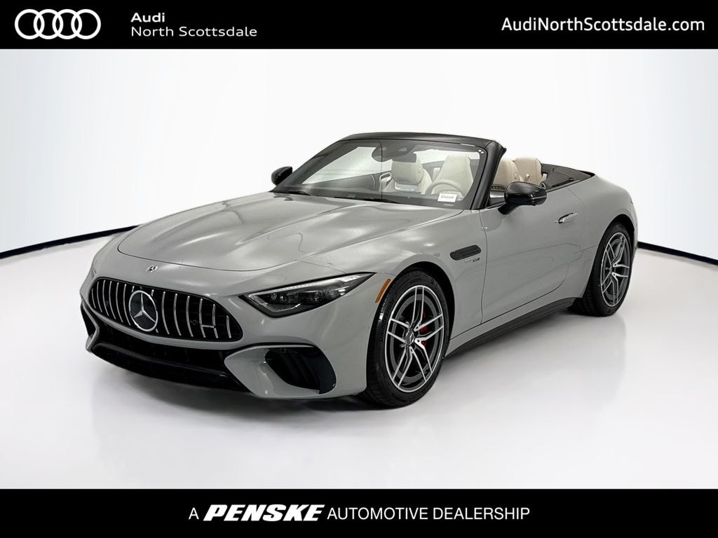 SL 55 AMG® 4MATIC®, 2D Convertible, STYLE Exclusive Macchiato Beige/Titanium Gray w/STYLE Exclusive Nappa Leather Upholstery, AMG® DYNAMIC PLUS Package, AMG® Night Package, Driver Assistance Package, 11 Speakers, 20" AMG® Twin 5-Spoke Wheels, 4-Wheel Disc Brakes, ABS brakes, Active Multicontour Front Seats w/Massage Feature, Adaptive suspension, Air Conditioning, All-Season Floor Mats (4-Pack), Alloy wheels, AM/FM radio: SiriusXM, AMG® ACTIVE RIDE CONTROL Suspension, AMG® Exterior Carbon Fiber Package, Android Auto®, Apple CarPlay®, Apple CarPlay®/Android Auto®, Augmented Video, Auto High-beam Headlights, Auto tilt-away steering wheel, Auto-dimming door mirrors, Auto-dimming Rear-View mirror, Automatic temperature control, Black SoftTop, Bluetooth® Connectivity, Brake assist, Bumpers: body-color, Burmester® Surround Sound System, Cargo System for Trunk, Child-Seat-Sensing Airbag, Convertible roof lining, Convertible roof wind blocker, Delay-off headlights, Driver door bin, Driver vanity mirror, Dual front impact airbags, Dual front side impact airbags, Electronic Stability Control, Emergency communication system: Mercedes me connect, Exterior Parking Camera Rear, Four wheel independent suspension, Front anti-roll bar, Front Axle Lift System, Front Bucket Seats, Front Center Armrest, Front dual zone A/C, Front reading lights, Garage door transmitter: HomeLink, Glass rear window, Heated Front Seats, Heated front seats, Heated steering wheel, Illuminated entry, Integrated roll-over protection, Knee airbag, Leather steering wheel, Low tire pressure warning, Macchiato Beige Microfiber Headliner, Macchiato Beige Seat Belts, Memory seat, Nappa Leather Upholstery, Navigation System, Occupant sensing airbag, Outside temperature display, Overhead airbag, Overhead console, Panic alarm, Passenger door bin, Passenger vanity mirror, Performance Trim Line, Power convertible roof, Power door mirrors, Power driver seat, Power passenger seat, Power steering, Power windows, Radio data system, Radio: MBUX Infotainment & Navigation System, Rain sensing wipers, Rear anti-roll bar, Rear fog lights, Rear window defroster, Remote keyless entry, Security system, SiriusXM Radio, Smartphone Integration, Speed control, Speed-sensing steering, Spoiler, Sport steering wheel, Steering wheel memory, Steering wheel mounted audio controls, Tachometer, Telescoping steering wheel, Tilt steering wheel, Touring Trim Line, Traction control, Trip computer, Turn signal indicator mirrors, Variably intermittent wipers, Ventilated front seats, SL 55 AMG® 4MATIC®, 2D Convertible, STYLE Exclusive Macchiato Beige/Titanium Gray w/STYLE Exclusive Nappa Leather Upholstery, AMG® DYNAMIC PLUS Package, AMG® Night Package, Driver Assistance Package. CARFAX One-Owner.