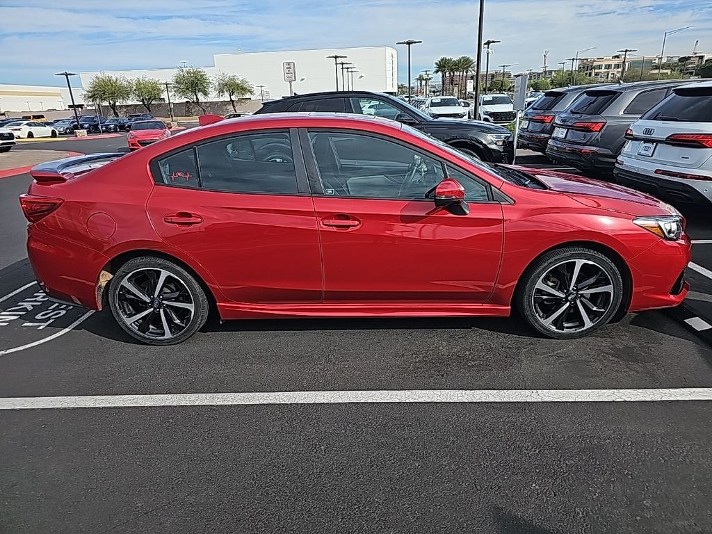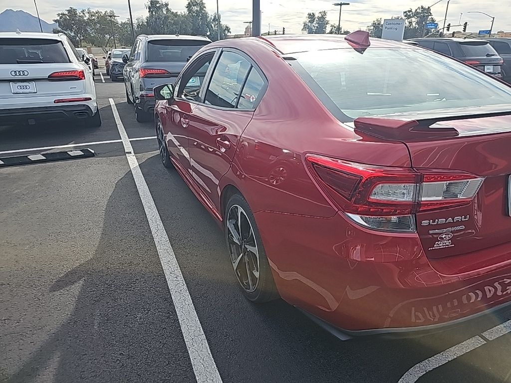 Impreza Sport, 4D Sedan, 2.0L DOHC, AWD, 6-Way Power Driver's Seat, All-Weather Floor Liners, Auto-Dimming Exterior Mirror w/Approach Light, Auto-Dimming Mirror w/Compass & HomeLink, Blind Spot Detection (BSD), Cargo Tray, harman/kardon Speaker System, Moonroof & BSD/RCTA & HK Audio & Power Dr. Seat, Popular Package #1, Power Moonroof, Rear Bumper Applique, Rear Cross Traffic Alert (RCTA) System, 4-Wheel Disc Brakes, 6 Speakers, ABS brakes, Air Conditioning, Alloy wheels, AM/FM radio: SiriusXM, Anti-whiplash front head restraints, Brake assist, Bumpers: body-color, CD player, Delay-off headlights, Driver door bin, Driver vanity mirror, Dual front impact airbags, Dual front side impact airbags, Electronic Stability Control, Emergency communication system, Exterior Parking Camera Rear, Four wheel independent suspension, Front anti-roll bar, Front Bucket Seats, Front Center Armrest, Front reading lights, Fully automatic headlights, Heated door mirrors, Heated Front Bucket Seats, Heated front seats, Illuminated entry, Knee airbag, Leather Shift Knob, Low tire pressure warning, Occupant sensing airbag, Outside temperature display, Overhead airbag, Overhead console, Panic alarm, Passenger door bin, Passenger vanity mirror, Power door mirrors, Power steering, Power windows, Radio data system, Radio: Subaru STARLINK 8.0" Multimedia Plus System, Rear anti-roll bar, Rear window defroster, Remote keyless entry, Security system, Speed control, Speed-sensing steering, Split folding rear seat, Spoiler, Sport-Trimmed Upholstery, STARLINK/Apple CarPlay/Android Auto, Steering wheel mounted audio controls, Tachometer, Telescoping steering wheel, Tilt steering wheel, Traction control, Trip computer, Turn signal indicator mirrors, Variably intermittent wipers, Wheels: 18" x 7.5" Machine Finish J Aluminum-Alloy, Impreza Sport, 4D Sedan, 2.0L DOHC, AWD, 6-Way Power Driver's Seat, All-Weather Floor Liners, Auto-Dimming Exterior Mirror w/Approach Light, Auto-Dimming Mirror w/Compass & HomeLink, Blind Spot Detection (BSD), Cargo Tray, harman/kardon Speaker System, Moonroof & BSD/RCTA & HK Audio & Power Dr. Seat, Popular Package #1, Power Moonroof, Rear Bumper Applique, Rear Cross Traffic Alert (RCTA) System.